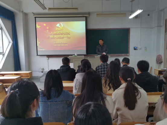 宣誓仪式结束后,郭全寿向新党员表示祝贺,并向新党员讲入党后的第一节党课。郭全寿带领同学们回顾了党领导国家经历的站起来、富起来、强起来的历程,号召同学们向党员前辈学习,牢记入党誓词,把入党誓词作为自己终身追求、终身修养和终身实践;随后领学了习近平总书记在党史学习教育动员大会上的讲话,要求员工党员读懂党史,不忘来时路,读好党史,走好脚下路,读透党史,坚定未来路,在学思践悟中为实现“两个一百年”奋斗目标不断努力。