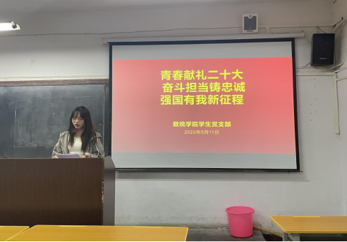 为进一步落实“四史”学习教育,加强对员工党员和入党积极分子的理想信念教育,号召大家以实际行动铸魂筑梦、喜迎二十大,2022年5月11日晚,数统院员工党支部组织员工党员、入党积极分子、发展对象40余人在2203教室开展“青春献礼二十大,奋斗担当铸忠诚,强国有我新征程”视频学习和交流讨论活动。