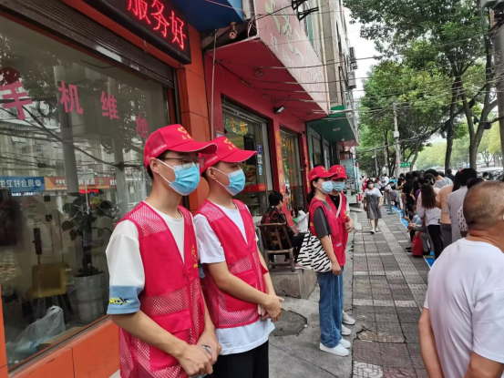 8月21日至今,公司累计十余名志愿者前往安康市周台社区开展多次社区全员核酸检测志愿服务。每次全员核酸之前,志愿者们都早早到达核酸检测采样点,做好准备工作。服务期间,主要负责维持秩序、信息登记等,有的站在入口处引导群众保持两米距离;有的在等候区提醒排队的群众提前准备好健康码或身份证;有的拿着手机,有序录入信息。他们与医护人员密切配合,竭力减少人员的排队时间,争取在最短的时间内完成检测任务,筑牢疫情防线,守护人民群众安全。
