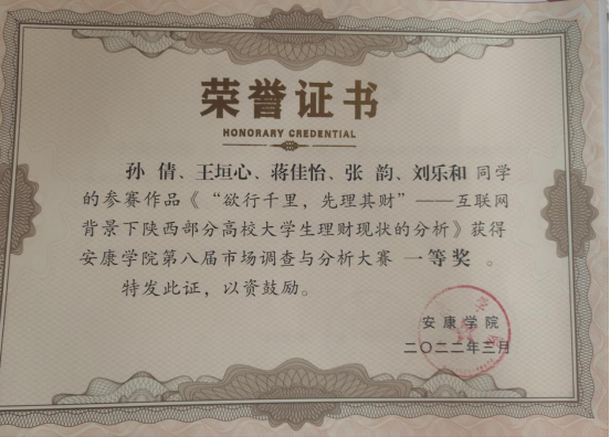 第十二届陕西省市场调查大赛省级三等奖