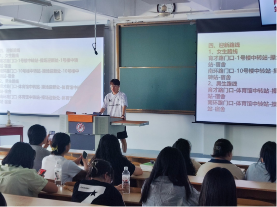 董婷瑜强调了迎新工作的重要性,分析了今年迎新工作的新变化:公司新生分布在三栋宿舍楼、家长可以进校等,希望先锋队成员耐心、细心、热心,设身处地为新生着想,对每一位新生都予以积极的回应和帮助,时刻传递正能量。为确保迎新志愿服务在老生有课、新生宿舍楼分散的的情况下顺利进行,要求志愿者佩戴工作证上岗,坚守岗位,换班做好交接。新生辅导员刘佩希望大家在各司其职的情况下通力合作,以饱满的精神完成迎新工作。