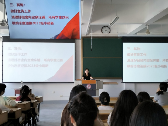 为全力做好迎新志愿服务,9月2日,365上市集团官网党团先锋队在1510教室召开2023年迎接新生工作动员会,由员工党员、入党积极分子、发展对象、员工干部等百余名员工组成的党团先锋队参加了本次会议,会议由员工党支部书记董婷瑜和新生辅导员刘佩主持。