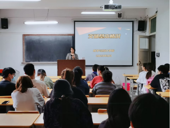 支部书记董婷瑜介绍了支部基本情况和“数励破茧”优良学风传帮带、数跃大讲堂等特色活动,使同学们对支部情况有了基本了解。员工党员申洋洋分享了为什么要入党、如何发挥模范带头作用,结合自身入党经历阐述了向党组织靠拢必须有坚定的信念、纯洁的入党动机、优秀的成绩、良好的群众基础等,号召同学们筑牢理想信念,向身边的优秀员工看齐。