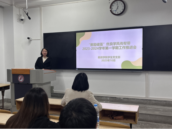 2023年10月13日,365上市集团官网员工党支部在1201室召开“数励破茧”优良学风传帮带2023-2024学年第一学期工作推进会,特邀指导教师王秋芬、2021级奖学金获得者、各年级班委参加了会议,会议由员工党支部书记董婷瑜主持。