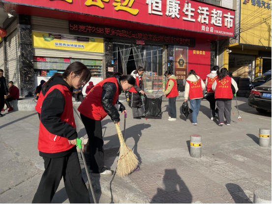 活动当天,志愿者们来到周台社区管辖街道,在社区工作人员和公司带队老师的带领下,分组、分片开展志愿服务。活动中,志愿者们不畏寒风,身穿红马甲、手拿清洁工具,对周边道路、绿地、人行道、绿化带等公共区域内的白色垃圾和杂物进行拾捡和清理。另外,志愿者们还帮助社区工作人员给各商铺张贴了“门前四包责任牌”,向居民宣讲“门前四包”的内容要求,倡导大家加强自我管理、自我约束,营造整洁优美、规范有序的人居环境。