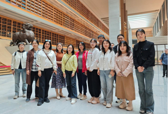 西安国家版本馆位于西安市鄠邑区圭峰山下,南倚秦岭,北望渭河,主体为高台建筑,是集展览馆、图书馆、档案馆、博物馆等多种功能形态于一体的综合性场馆。在讲解员的引领下,老师们依次参观了《楮墨遗珍万里同风——丝绸之路版本展》、《赓续文脉 踔厉前行——中华文化经典版本展(西部篇)》等展厅。