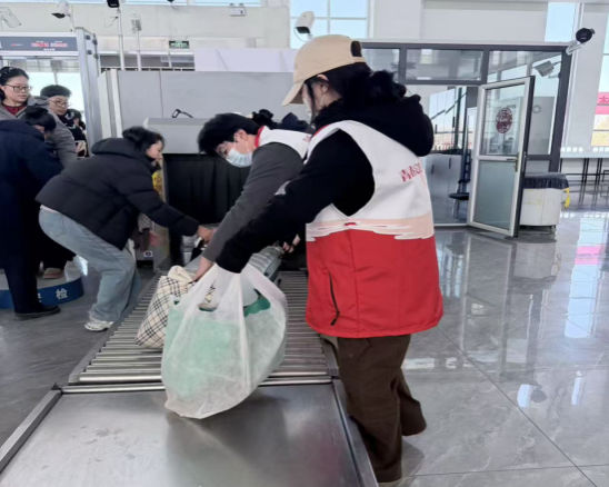 春节将至,年味渐浓。在陕西榆林定边县火车站,归心似箭的旅客步履匆匆。面对春运期间激增的客流,24级数学与应用数学3班的屈思臻同学主动报名加入“青春志愿行,温暖回家路”春运志愿服务活动,成为守护旅客归途的一员。