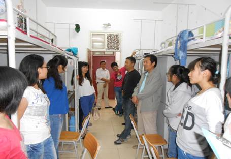 和蔼可亲的郭老师与新同学们拉家常,让初来乍到的新同学们感受到了浓浓的温情。副主任汪老师仔细询问同学们在新环境下的生活情况。辅导员张远秀嘱咐同学们,天气渐冷要注意饮食穿衣。马老师了解了新生的家乡情况,特别对部分外省员工倍加关注。员工会干部以学长的身份亲切的介绍了老员工活和学习情况,告诉新同学要积极适应。大家离开公寓已近10:00。