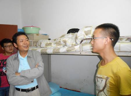 时光荏苒,白驹过隙,又是一年开学时。9月8日晚7:30,系党总支书记郭全寿,副主任王昭海、汪义瑞,学工办主任马新华,辅导员张远秀及系员工会部分干部前往6号、7号公寓楼,看望了系2013级新同学,为同学们送去了亲切的问候和备至的关心。来自全国各地的新同学们见到老师非常感动。