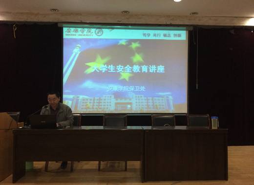 为加强同学们的安全防范意识,提升安全教育水平,更进一步维护校园稳定安全,10月23日晚上,数统系邀请保卫处处长王开忠在1号教学楼6楼报告厅组织举办了2013级新生安全知识讲座。辅导员张远秀主持讲座。