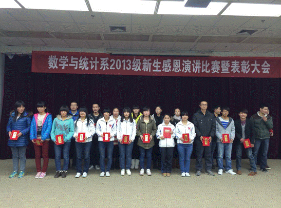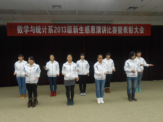12月23日晚,数统系在图书馆六楼报告厅举行了感恩演讲及手语操比赛,数统系书记郭全寿,团总支书记张远秀,教师代表彭晓刚及13级全体员工参加本次活动。