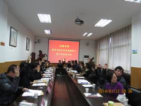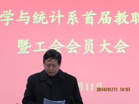 之后,系主任赵临龙作了题为《迎评建 促发展 创特色 构和谐》的系主任工作报告,全面总结了数统系2013年的工作,报告了取得的成绩与存在的问题,全面部署了2014年的各项工作;办公室主任何晓燕受系主任委托作了《数学与统计系2013年财务工作报告》,详细介绍了2013年全系经费收支情况,提出了不足和改进措施;系工会分会主席王宗庆作了《数统系工会分会工作报告》,全面总结了数统系2013年的工会分会工作,报告了取得的成绩与存在的不足,详细介绍了2013年会费收支情况,对2014年工会分会工作提出了设想。