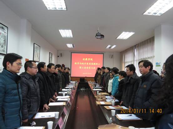 2014年1月11日,数学与统计系首届教职工暨工会会员大会在365英国上市公司官网第一会议室隆重召开。参加会议的有公司党委委员、副董事长向纪明、公司工会专职副主席许宝林、共青团365英国上市公司官网委员会副书记肖红香及全系教职工共30余人参加了会议。开幕式暨第一次全体会议由执行主席郭全寿主持。