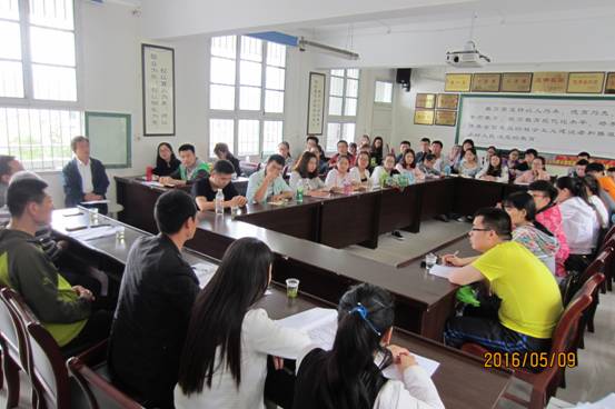 二、座谈交流 听课后,见习生分两组分别在流水中学综合楼会议室和教学楼会议室与授课老师座谈交流。座谈会上,授课老师就本节课的教学设计、教学过程安排作了介绍,随后就如何备课,如何上好课,如何组织管理好课堂,如何与员工交流等问题与见习生们进行了互动交流。