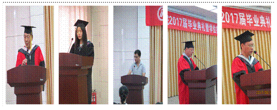 在雄壮的国歌声中,2017届毕业典礼拉开了帷幕。大会第一项由2013级数应二班员工,西安理工大学研究生张英同学代表2017届全体毕业生发言,她代表全体毕业生向母校及全体老师表达最诚挚的感谢,回忆自己大学四年的点点滴滴,并分享了自己大学四年考研的经验,最后祝福所有老师事业之树常青;祝母校人才辈出更好的发展。