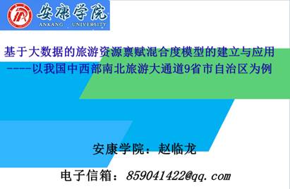 公司赵临龙教授向会议提交的论文《基于大数据的旅游资源禀赋混合度模型的建立于应用》安排在分会场报告交流。论文利用旅游资源禀赋混合度建立的评价模型,给出我国中西部南北旅游大通道9省市自治区:内蒙古、陕西、重庆、贵州、湖北、湖南、广西、广东、海南的旅游资源禀赋的等级划分,结合“十三五”期间各地的旅游效益实证分析情况,对各地旅游发展提出相关的建议。
