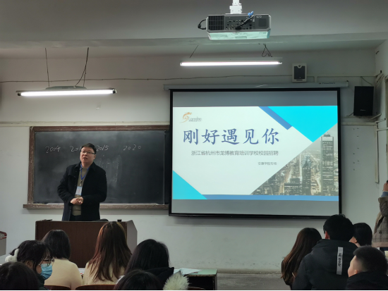 董婷瑜介绍了专场招聘会的目的,希望同学们抓住机会,和用人单位充分沟通了解,达成就业意向。接着四个单位按顺序进行宣讲,招聘单位对本单位的基本情况、发展愿景进行了详细介绍,接着就员工关心的培训机制、薪资待遇、晋升通道等核心问题进行详细讲解。宣讲环节结束后,部分单位进行了现场一对一面试,据不完全统计,十余名员工与用人单位达成了初步就业意向。