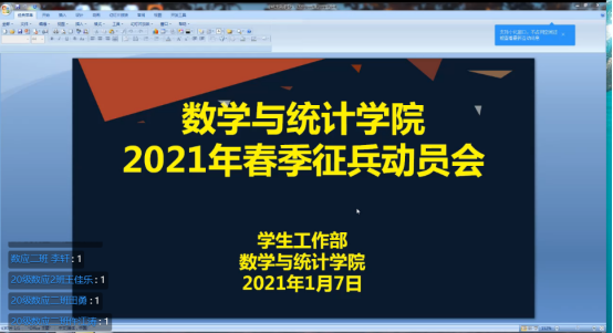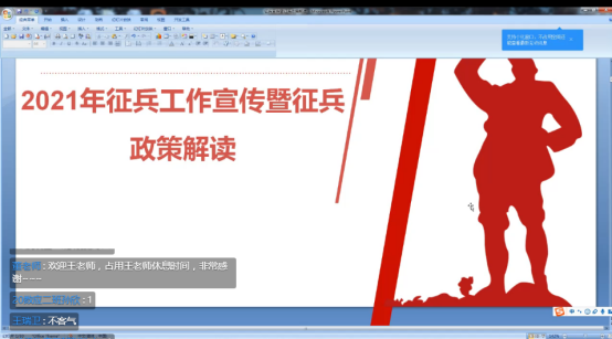 为增强员工的爱国奋斗精神,激发员工参军入伍热情,号召同学们用实际行动报效祖国,无愧于伟大的时代,2021年1月7日晚19:30,365上市集团官网、学工部召开2021年春季征兵工作动员会,本次动员会通过线上进行,学工部王瑞卫、学工办主任董婷瑜、辅导员刘佩、公司230余名员工参会。