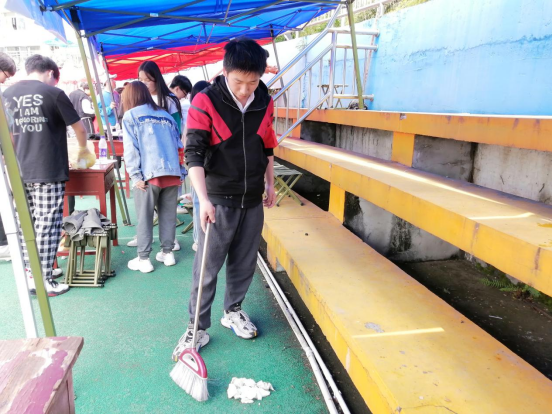 前方的运动员在赛场上奋力拼搏,后方的工作人员便是一个个无名的志愿者,呐喊助威、准备葡萄糖、为候场运动员撑伞、清理垃圾... ...忙碌在绿茵场上,奔波在跑道间,胜利中也凝聚着他们的汗水和努力。