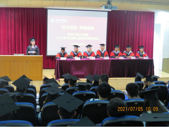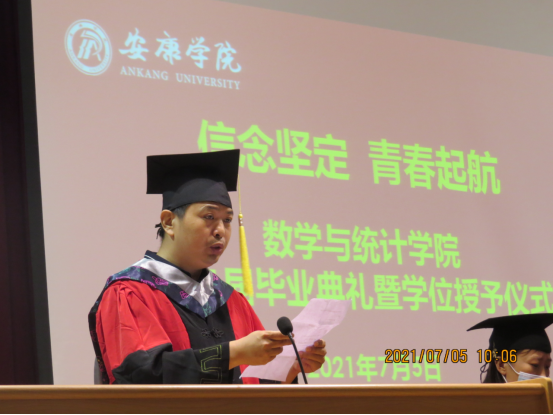 副经理杨高翔宣读毕业生与学士学位授予名单,其中数学与应用数学专业员工105名,统计学专业员工74名授予理学学士学位。副经理徐龙华宣读陕西省优秀毕业生、陕西省优秀员工干部、365英国上市公司官网优秀毕业生获评名单。