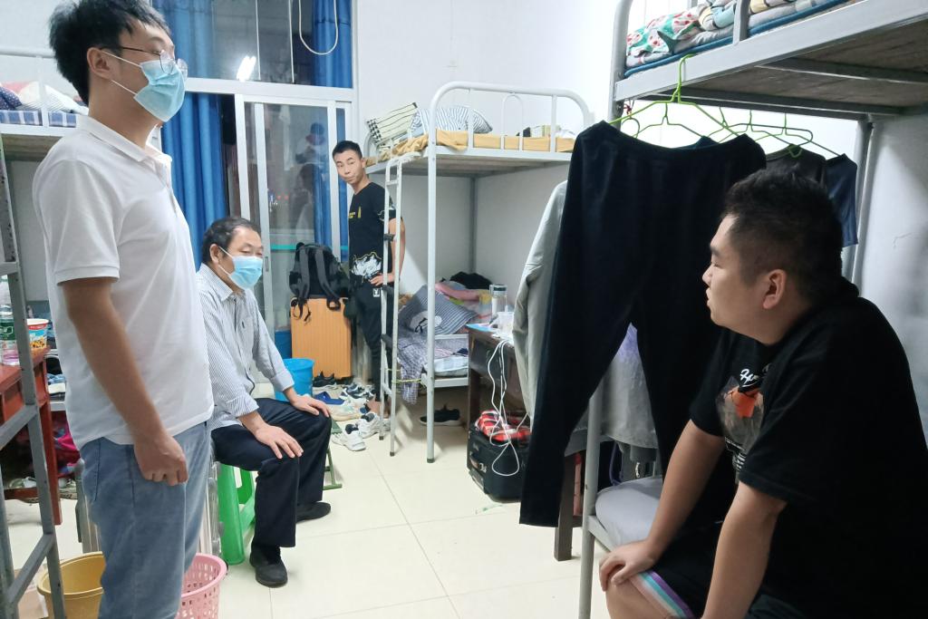2022年10月2日晚,公司党总支书记郭全寿带领辅导员走进员工宿舍,开展国庆节期间宿舍走访。