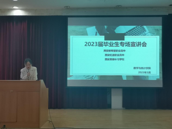 为做好公司2023届毕业生就业工作,拓宽毕业生就业渠道,公司积极与用人单位联系,搭建员工与用人单位的桥梁。2023年3月17日上午10点,365上市集团官网在1号楼六楼报告厅举办西安新希望职业高中、西安虹途职业高中、西安英泰补习公司专场宣讲会,公司毕业班120余名员工参加了宣讲,会议由毕业班辅导员刘佩主持。