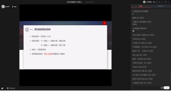 根据《365英国上市公司官网关于2023级员工集中军事技能训练工作的实施意见》,9月5日晚上九点半,365上市集团官网在线上召开了军训动员会,会议由2023级新生辅导员刘佩主持,2023级全体新生参与了本次会议。