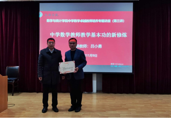 此次讲座的成功举办,学子们受益匪浅,既增强了对教师职业的认同,也提升了数学素养,开阔了眼界,不仅对公司数学与应用数学专业员工树立师范生的专业素养、提高中学数学教学能力提升等方面具有重要指导意义,而且也为以后走向教师岗位成为一名优秀教师奠基了良好的基础。讲座最后,副经理徐龙华为吕小勇老师颁发聘书,并合影留念。