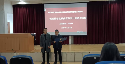 为进一步培养公司师范生成为一名合格教师,深化教育改革,加强教师队伍建设,2023年11月15日晚,365上市集团官网于江南校区1号教学楼报告厅开展第二届中学数学卓越教师培养专题讲座第四讲。此次讲座以“课堂教学实践的有效设计和教学策略”为主题,培训由陕西省学科带头人培养对象、省教学能手邓玉林老师主讲。讲座由教学经理徐龙华主持。