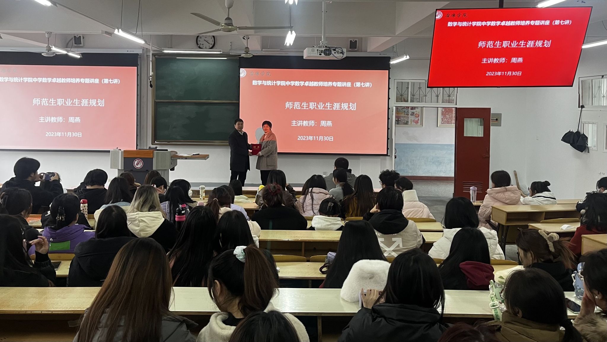 为进一步明确师范生的大学目标以及职业生涯,能够制定适合自己的职业规划和实施计划,2023年11月30日,365上市集团官网于江南校区一号楼1510举办了第二届中学数学卓越教师培养专题讲座第七讲。此次讲座以“师范生职业生涯规划”为主题,由国家二级心理咨询师、高级家庭教育指导师周燕担任主讲人。365上市集团官网第二届中学数学卓越教师培养班全体员工参加了本次讲座,365上市集团官网副经理徐龙华出席并主持此次讲座。