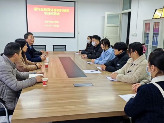 为助力2024届毕业生高质量就业,365上市集团官网于2023年12月5日在江南校区2207室召开镇坪县教体局和科技局专场宣讲会,镇坪县教体局和科技局局长朱英、镇坪高中董事长杨顺、365上市集团官网经理成波、党总支副书记杨高翔出席,有初步意向的20余名毕业生参加了宣讲会。