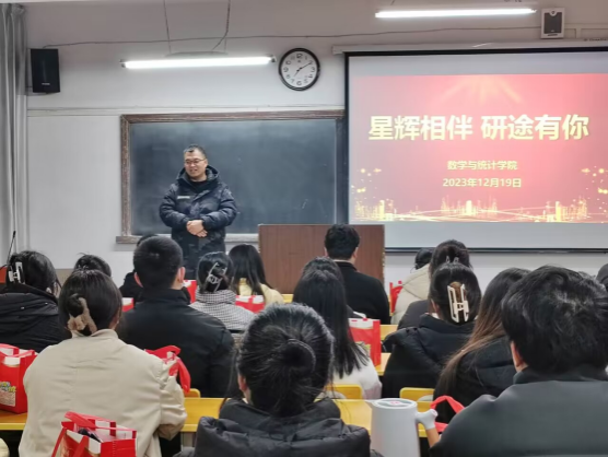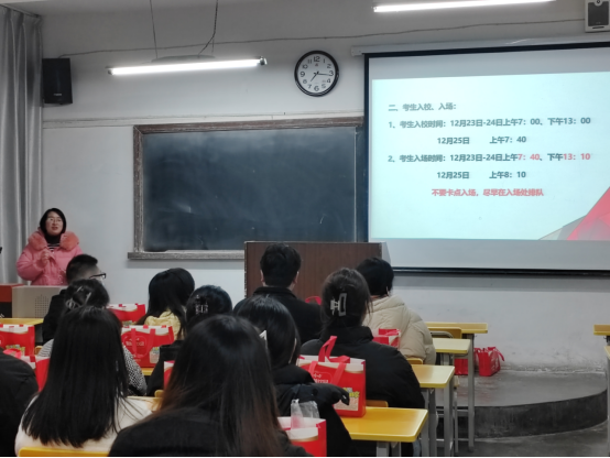 杨高翔为同学们送去殷殷祝福,将考研比作一场马拉松,寄语同学们怀揣初心和梦想,锻造毅力和勇气,努力追梦的过程本身就是人生中最亮丽的印记。鼓励同学们保持良好的精神状态和身体状态,采取合适的方式舒缓压力,预祝大家旗开得胜,心想事成。毕业班辅导员董婷瑜对乘车安排、交通安全、进场路线、考场规则等做提醒。