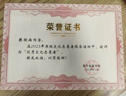 在今年的寒假中,365上市集团官网2023级数学与应用数学专业2班樊欣雨参加了富平县图书馆进行了志愿工作。她表示,通过志愿服务工作不仅提升了自己的社会实践能力和综合素质,还增强了自己的创新意识和市场意识。“虽然这次社会实践只有短短的一周,但对我来说却分量很重,这是我积累知识的一周,是开阔视野的一周,是提升境界的一周,是增进友谊的一周,是我终身难忘的一段美妙的人生履历。”这是樊欣雨同学最真实的工作感悟,这也是激励她在以后的岁月里不断提高与完善自己,让自己成为一名优秀的老员工的重要力量。作为新时代青年老员工,需要更加广泛的学习,适应社会的发展,积极为祖国的繁荣富强做出自己的贡献,让自己在社会上得到更好的发展,让自己变得更强。她表示会在之后的假期中,多参加志愿活动,为社会做出更多的服务。