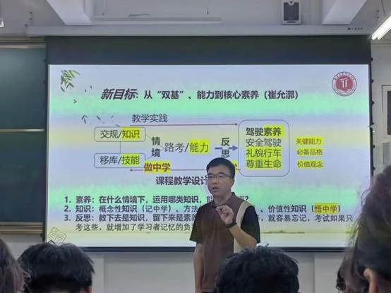 邓玉林老师从新颁发的课程标准入手,引出了新的课程理念,即人人都能获得良好的数学教育,不同的人在数学上得到不同的发展,逐步形成适应终身发展需要的核心素养。接下来,邓玉林老师从教学目标、教学内容、教材处理、教法的选择等十个方面入手,向同学们展示了如何在新课程理念指导下教学。