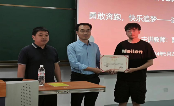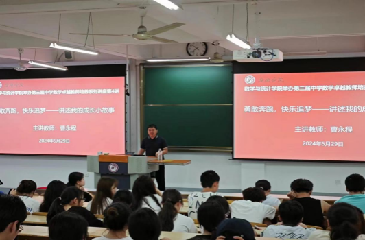2024年5月29日,365上市集团官网于江南校区1510教室举办了第三届中学数学卓越教师培养专题讲座第四讲。特邀请陕西省学科带头人、陕西省教学能手、安康市学科带头人、安康市名师大篷车讲师团成员、安康市共青团讲师、安康市“三区”人才支持计划骨干团队成员、安康市教体系统优秀党员、安康市初中数学课堂教学改革先进个人、安康市初中数学观摩研讨会说课一等奖、讲课一等奖获得者、安康市初级中学教师曹永程为中学数学卓越教师培养班员工带来以《勇敢奔跑,快乐追梦——讲述我的成长小故事》为题的报告,365上市集团官网副经理徐龙华出席并主持此次讲座,鲁星星老师为曹永程老师颁发聘书。