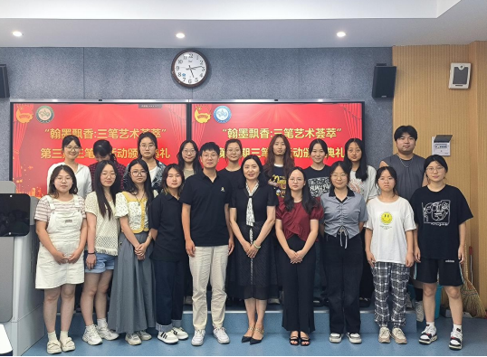 6月27日公司举行“翰墨飘香,三笔艺术荟萃”三笔字书法比赛颁奖典礼,公司党总支书记储玖琳,团总支书记马勇、辅导员刘佩参加了本次颁奖典礼。