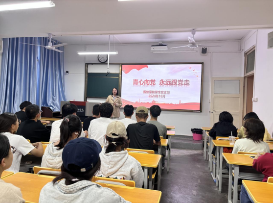 员工党支部书记董婷瑜鼓励同学们积极向党组织靠拢,听党话,跟党走,不断端正入党动机,成为有思想、有温度、有能力的新时代青年。随后向2024级新生详细讲解了递交入党申请书、成为入党积极分子、发展对象、入党、转正的流程,梳理了各阶段的基本要求。员工党员杨谨分享了她的成长历程,她表示,“行动是青年最有效的磨砺”,号召大家始终对自己高标准、严要求,努力学习专业知识,积极参与各类活动和学科竞赛,不断成长,以实际行动争取早日入党。