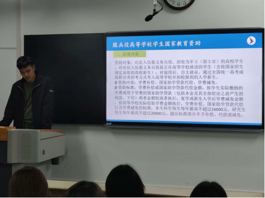苏文婷介绍了国家资助政策框架、形式。解释了每种资助政策的申请条件、申请流程以及资助金额,确保同学们对政策内容有清晰的认识。