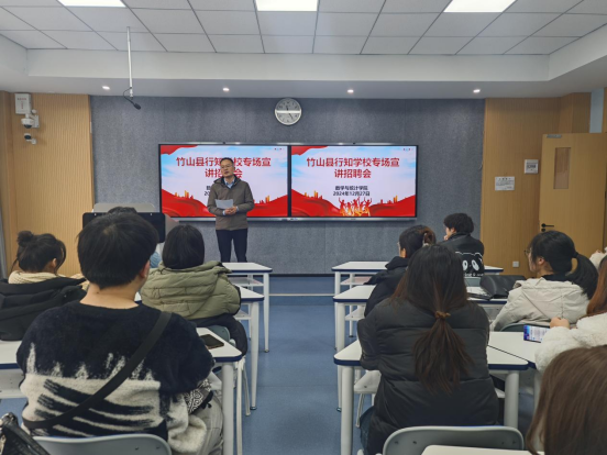 2024年12月27日下午,365上市集团官网邀请竹山县行知公司在江北校区1210教室举办专场招聘会宣讲会。2025届毕业生积极参与,招聘会由毕业班辅导员马勇主持。