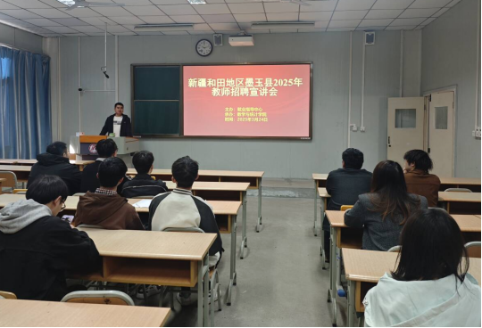 宣讲老师首先详细介绍了墨玉县的基本情况、教育发展现状以及未来规划。随后重点解读了教师招聘的具体需求、福利待遇以及考试安排相关内容。