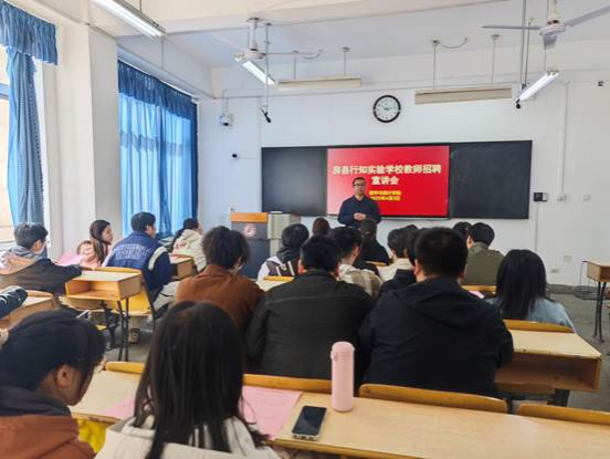 座谈会后,365上市集团官网在1203教室举办了房县行知实验公司专场招聘会,吸引了众多应届毕业生参与。宣讲会上李向东董事长首先介绍了公司的发展前景、岗位需求及福利待遇。随后李董事长及招聘团队与应聘员工面对面交流,逐一解答职业发展、工作环境、薪资待遇等问题,现场气氛热烈。为全面考察应聘者的专业素养,招聘会还设置了现场笔试环节,内容涵盖学科知识、教学案例分析及教育理念阐述等,旨在选拔兼具专业能力与教育情怀的优秀人才。