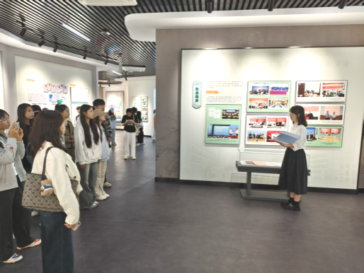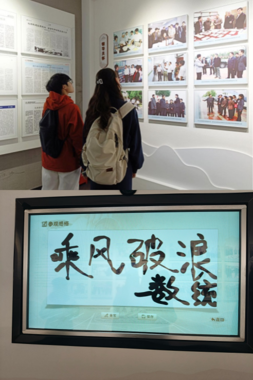 活动中,校史馆讲解员结合馆内的文字史料、老照片、实物展品等,从公司的创办背景、发展变迁、人才培养等方面,为同学们生动讲述了公司的历史沿革。“同心逐梦,寄语未来”电子签名区互动环节中,同学们纷纷留下参观感悟,用数字笔迹传递对校史的共鸣与祝福。活动尾声,新生辅导员邹珊在“弦歌不辍 奋楫笃行”主题展区前,结合党建引领、人才培养成果勉励大家:“校史里的每步发展都是前辈拼搏的印记,要从历史中汲取智慧,传承‘笃学、尚行、励志、创新’的校风。”