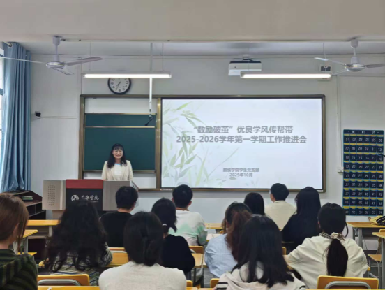 会议首先进行了“数励破茧”社团年度负责人换届交接仪式。上一届负责人赵陇辉回顾了社团过去一年的工作成果与经验感悟,强调传帮带精神在学风建设中的纽带作用,并寄语新团队接续奋斗。新任年度负责人杨碧莲在发言中表示,将在继承优良传统的基础上,进一步创新活动形式、拓展覆盖范围,团结带领团队成员推动项目持续深化。