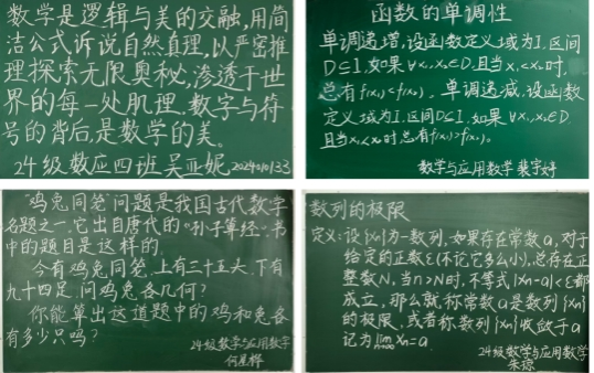 比赛分为钢笔、粉笔和毛笔三个组别,吸引了全院近百名员工积极参与。参赛作品主题鲜明,既有对法治精神的深刻诠释,也有对廉政文化的生动表达,更不乏将数学公式、数学思想与中国传统书法艺术相结合的创新之作。其中法治主题作品以宪法条文、法治格言为内容,笔锋刚劲有力,体现了数学人严谨守法的精神追求;廉政文化作品通过古代廉吏诗词、现代廉政警句,以翰墨清香传递清风正气,展现了公司廉洁育人的教育理念;数学文化创作成为本次活动亮点,参赛者将数学公式、数学定理、数学家名言与传统书法艺术巧妙融合。欧拉公式、勾股定理等数学元素在宣纸上跃然而出,既体现了数学之美,又展示了传统文化的魅力。
