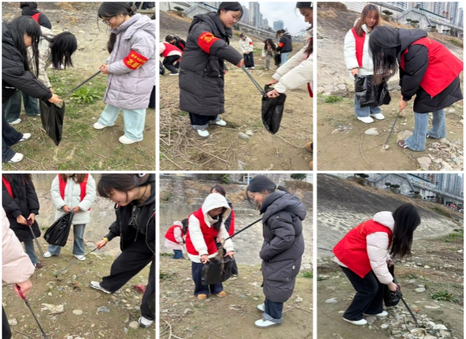 抵达现场后,志愿者们迅速投入清扫工作,手持清洁钳、环保袋沿河岸有序推进,对塑料瓶、烟头、废弃包装等生活垃圾逐一清理,默契配合传递垃圾、补位清扫,不放过任何卫生死角。尽管冬日江风刺骨,但志愿者们始终热情饱满、干劲十足,大家不怕脏、不怕累,躬身拾捡,用实际行动美化江岸环境。
