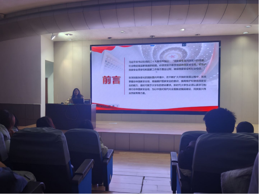 在国家安全板块,邹珊结合典型案例解读总体国家安全观,着重强调意识形态安全是国家安全的核心要义。她指出,青年学子需认清意识形态领域复杂形势,坚定理想信念、站稳政治立场,坚决抵制错误思潮侵蚀,筑牢思想与安全双重防线,争做国家安全守护者和意识形态阵地捍卫者。