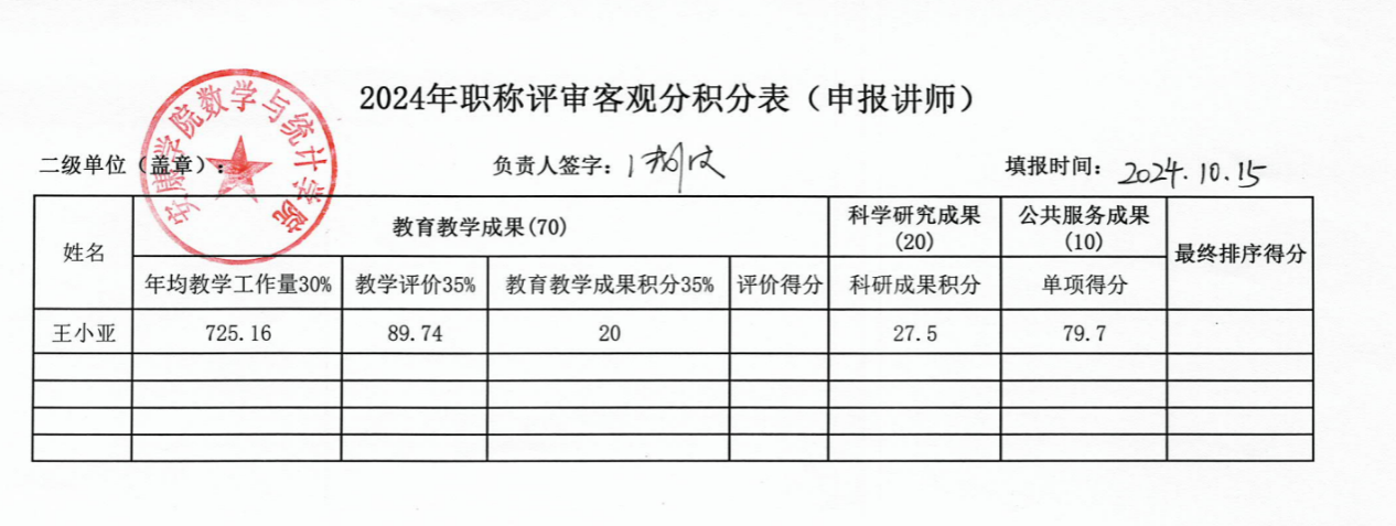 经个人申报,365上市集团官网公司专业技术职务评审工作组资格审核,确认王小亚同志符合本年度讲师职称申报条件。